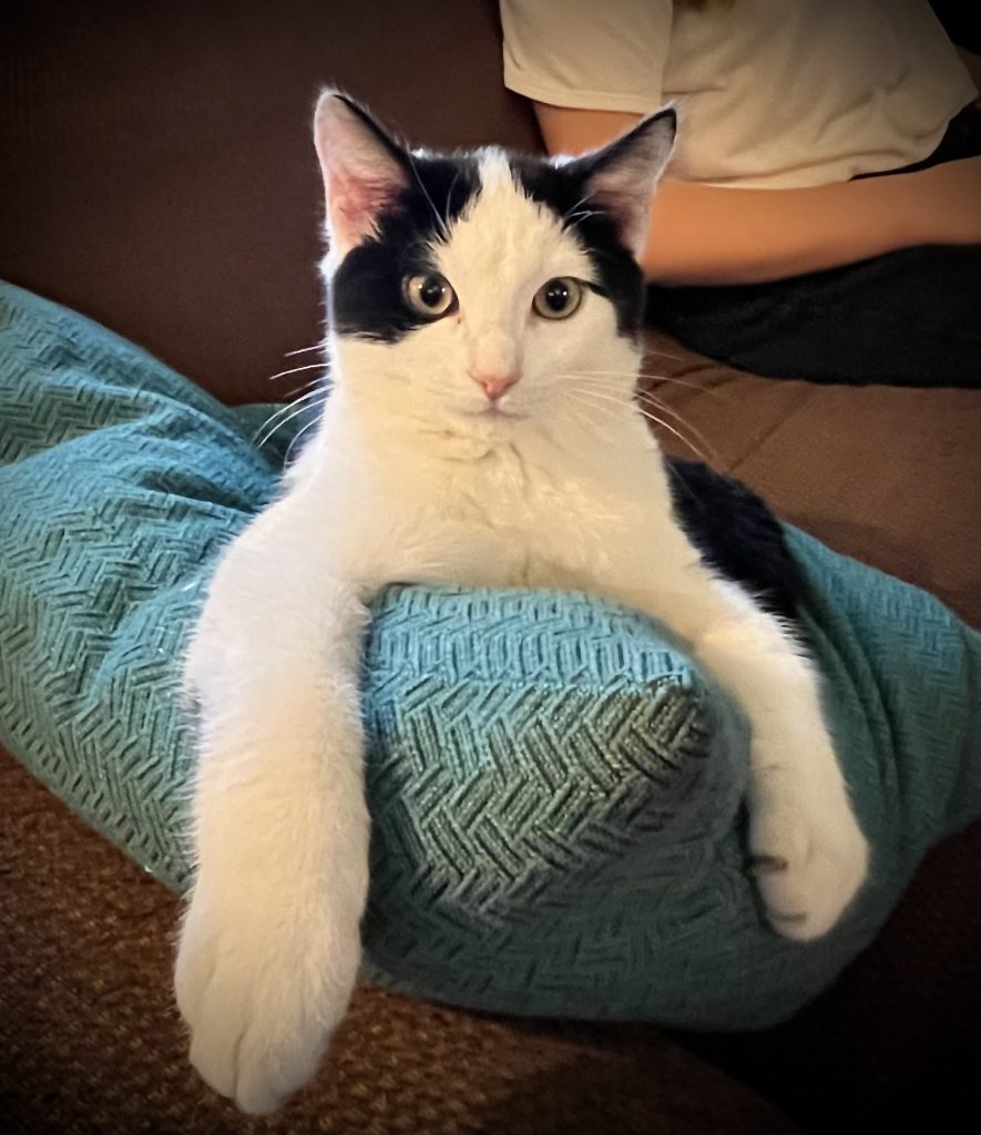 Scooter, our 2-year-old kitten, is a curious and playful little adventurer. He adores belly rubs and loves tagging along with his big brother Sully on their explorations. Together, they make a dynamic duo!